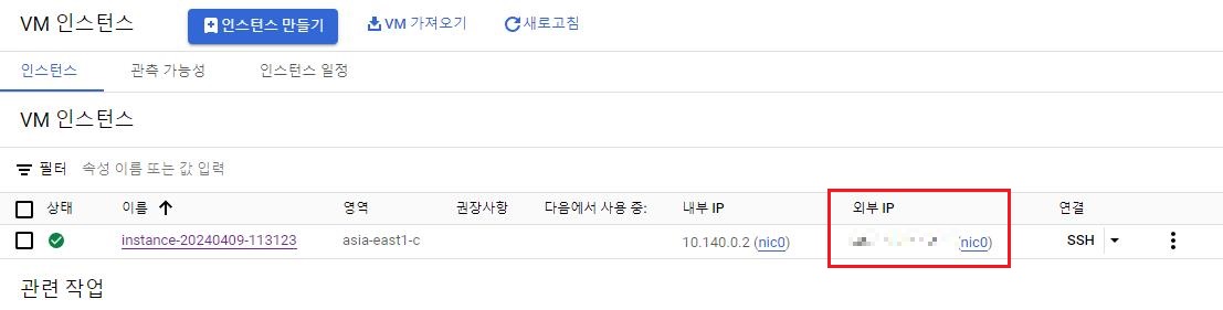 - 호스트 : GCP VM 인스턴스 외부 IP
